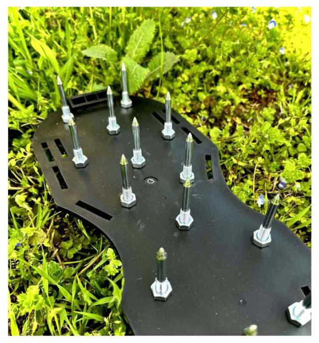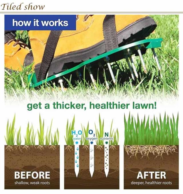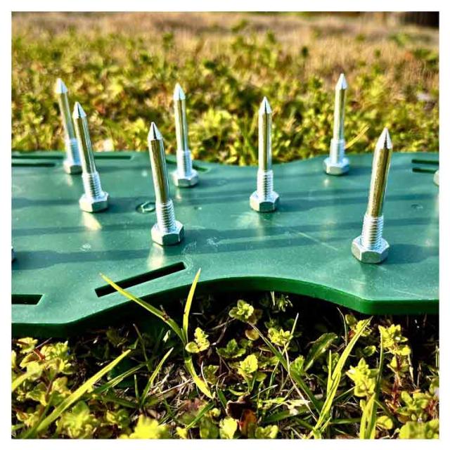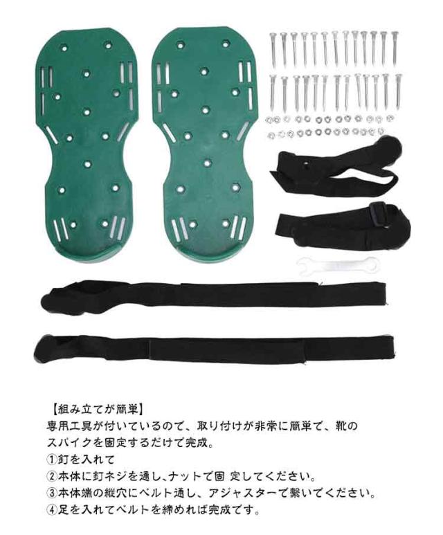| 【ガーデンスパイク】履いて歩くだけ芝生の穴あけ作業が簡単に芝生のお手入れに重要な穴あけ作業。複雑な機器や多額の費用に投資する必要はありません。ガーデンスパイク履い芝生の上を体重をかけながらゆっくり歩くだけ。足の裏のスパイクで穴あけが簡単にできます。歩くだけで穴あけ作業ができるので、とっても簡単。面倒な芝生のメンテナンスラクラクになります。 【効果】土に穴をあけ空気を送り、土壌微生物を活性化 、土の軟化 、保水性や通気性の向上 ・芝生を適度に傷めて成長を活性化し、発根促進 ・古い根を切る 芝生を綺麗に保つ事ができます。 【フリーサイズ】男女兼用、バンドで大きさを簡単に調整可能、幅も調整可能な設計になっております。ほとんどの足のサイズに最適です。 【組み立てが簡単】専用工具が付いているので、取り付けが非常に簡単で、靴のスパイクを固定するだけで完成。1.釘を入れて2.本体に釘ネジを通しナットで固 定してください。3.本体端の縦穴にベルト通し、アジャスターで繋いでください。4.足を入れてベルトを締めれば完成です。 | |