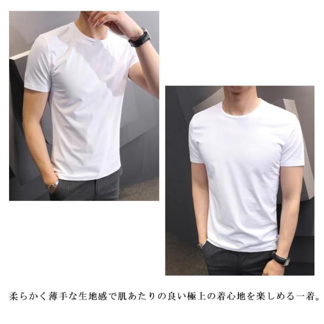 | S−5XL!シンプルでな半袖無地tシャツ。 柔らかく薄手な生地感で肌あたりの良い極上の着心地を楽しめる一着。 体のラインに沿うシルエットでありながらストレッチ性があるため、ストレス感なく男らしいシルエットを楽しめる。 ワンカラーでどんなスタイルに合わせやすく、一枚でもインナーにも使用できる万能トップス。 | |