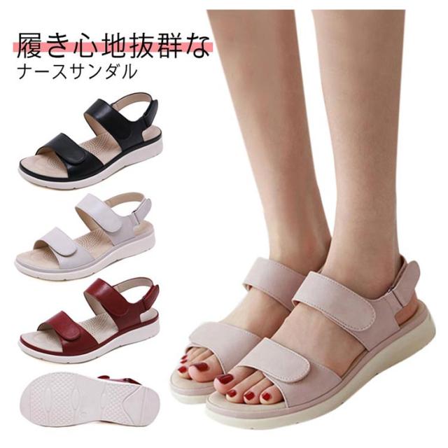 コンフォートサンダル サンダル ナースサンダル オフィスサンダル 外反母趾予防 レディース 歩きやすい ローヒール ナースサンダル 履きやすい 事務用サンダル マジックテープ 婦人用 会社
