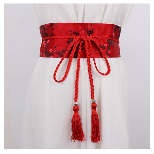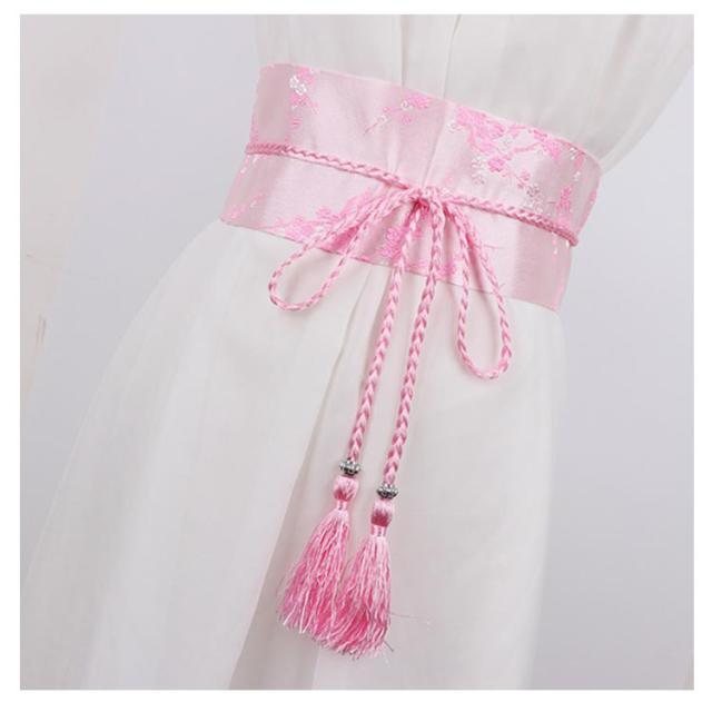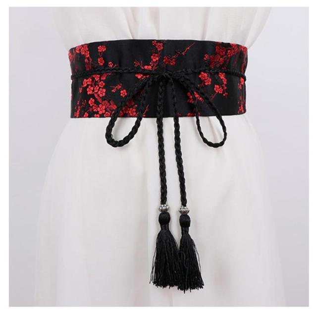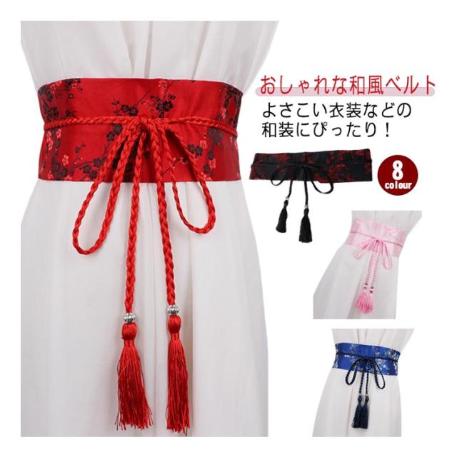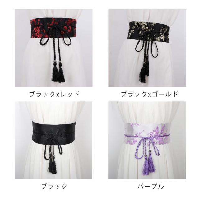コルセット 和風 ベルト サッシュベルト ハイウエスト 帯 鶴柄 太ベルト 着物 桜柄 和柄 和風 光沢感 ウエストマーク フリンジタッセル 舞台衣装 祭り用品 お嬢様風 コスプレ 花柄 レースアップ