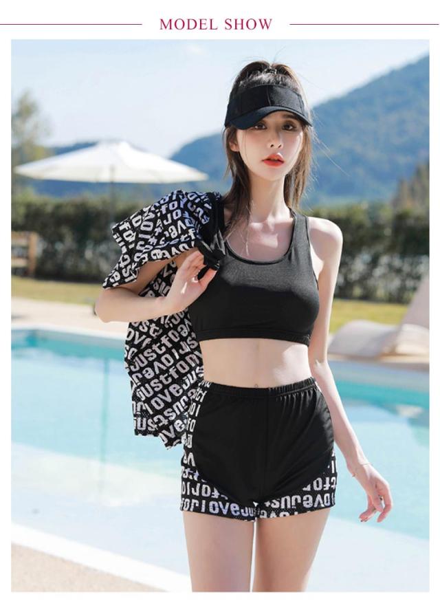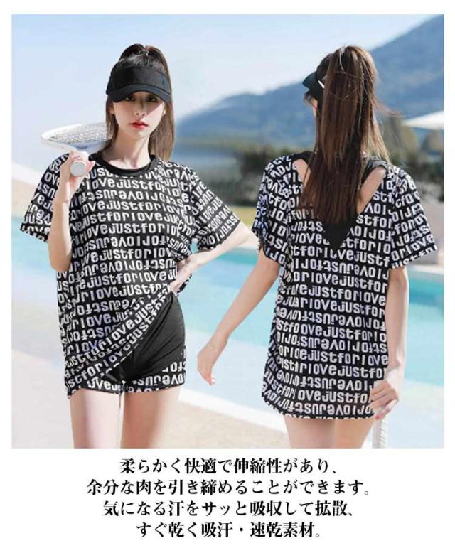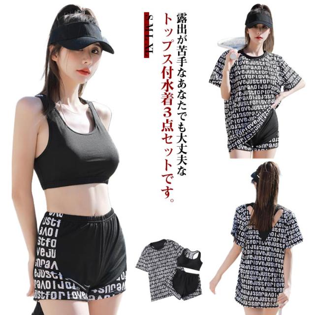 中学生 体型カバー 3点セット レディース 高校生 セパレート 学生 夏 スポーティー 水着 Tシャツ パッド付き 半袖 韓国風 フィットネス水着 かわいい 女の子 少女 ジム スポーツ 運動用 修学旅行 露出控えめ リゾート 水泳 ビーチ