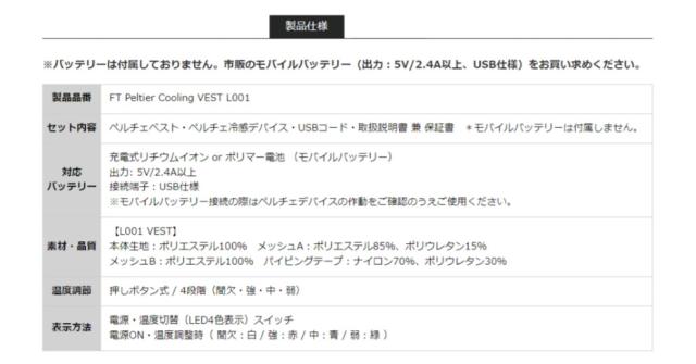 □ セット内容:ペルチェベスト・ペルチェ冷感デバイス・USBコード・取扱説明書 兼 保証書 *モバイルバッテリーは付属しません。