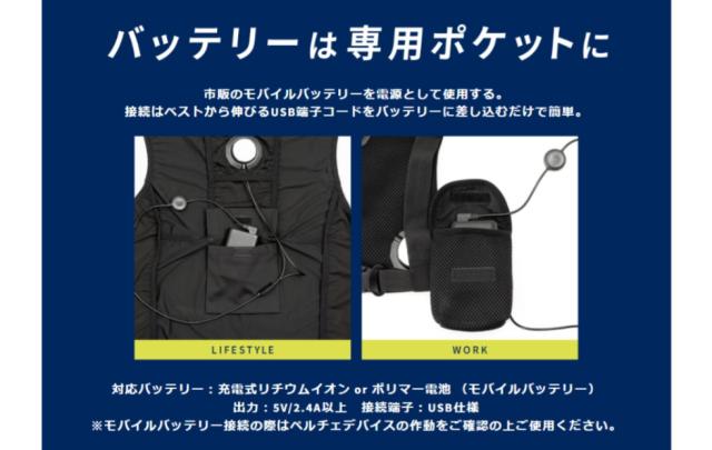 ※モバイルバッテリー接続の際はペルチェデバイスの作動をご確認のうえご使用ください。