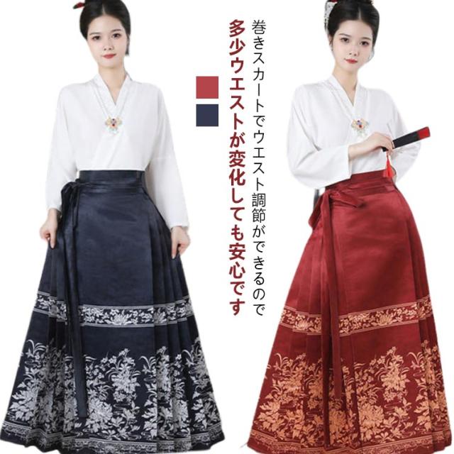 漢服唐装 復古風 ロングスカート プリーツスカート ラップスカート サーキュラースカート スカート ロング丈 マミアンスカート 大人かわいい レディース 民族風 巻きスカート 中華服 古代 マミアンスカート コスプレ衣装 チャイナドレス 写真撮影 中国宮廷風唐装 春 夏 秋
