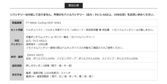 □ セット内容:ペルチェベスト・ペルチェ冷感デバイス・USBコード・取扱説明書 兼 保証書 *モバイルバッテリーは付属しません。