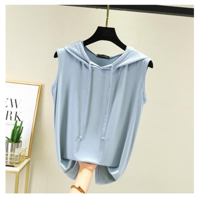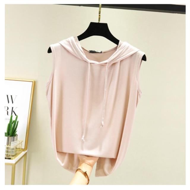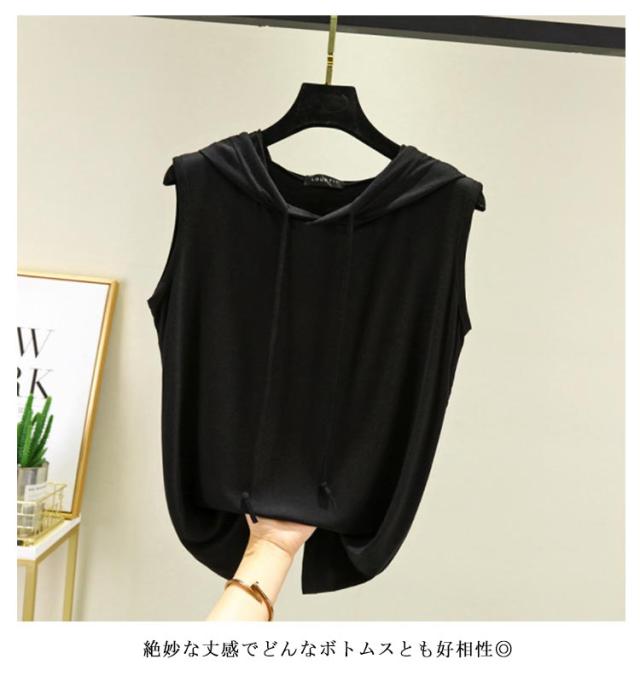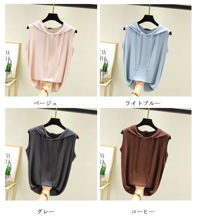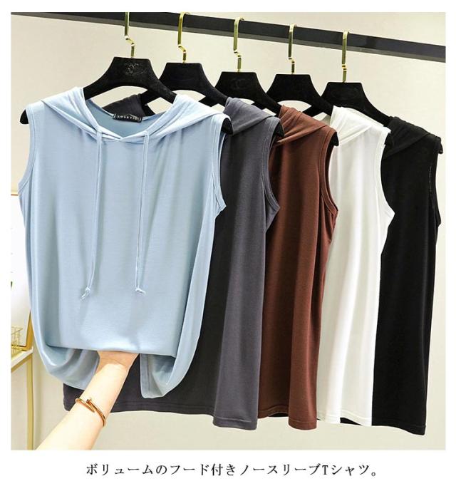ノースリーブ パーカー ノースリーブ ベスト フード付き 夏 tシャツ フード付きtシャツ 袖なし レディース 無地 シンプル カットソー 春夏 ゆったり 重ね着 レイヤード お洒落