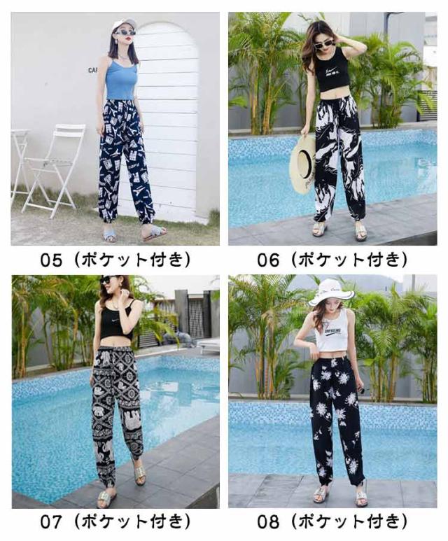 ゾウ柄 タイパンツ ジョガーパンツ ルームパンツ 可愛い 部屋着 おしゃれ 花柄 サルエルパンツ 夏 総柄 レディース 女性 裾ゴム 婦人 ジョガーパンツ 長ズボン ポケット付き ビーチパンツ ウエストゴム 薄手 ボトムス 大きいサイズ 涼しい ヨガ ダンス スポーツ
