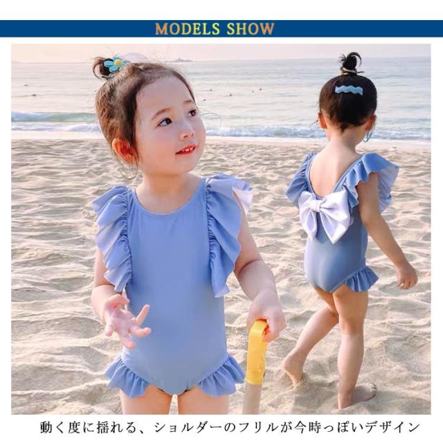 | フリルスイムウェア 80-130cm 動く度に揺れる、ショルダーのフリルが今時っぽいデザイン 後ろ姿もかわいい!バックデザインにもこだわりました ワンピースタイプはお子様ひとりでも着脱しやすい | |