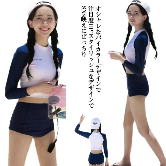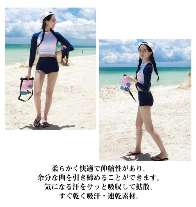 中学生 セパレート ママ水着 競泳水着 大きいサイズ フィットネス 学生 高校生 2点セット 体型カバー水着 長袖トップス レディース ショートパンツ フィットネス 20代 30代 ミセス 水着 スポーツ ジム プール 日焼け対策 露出控えめ