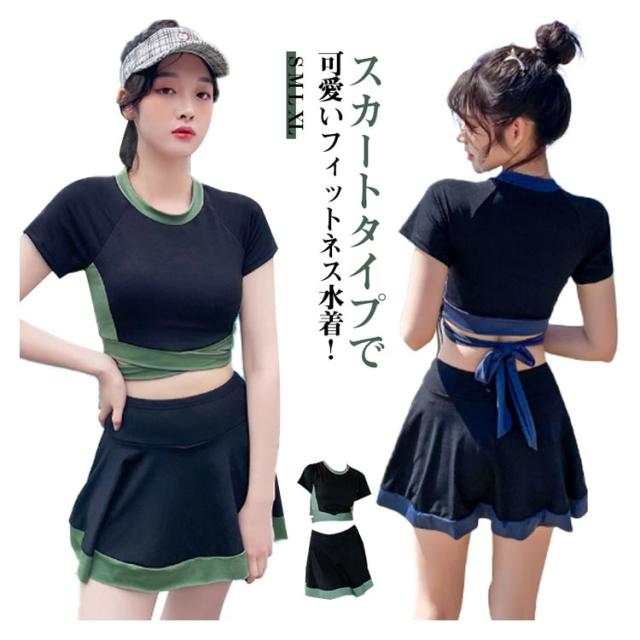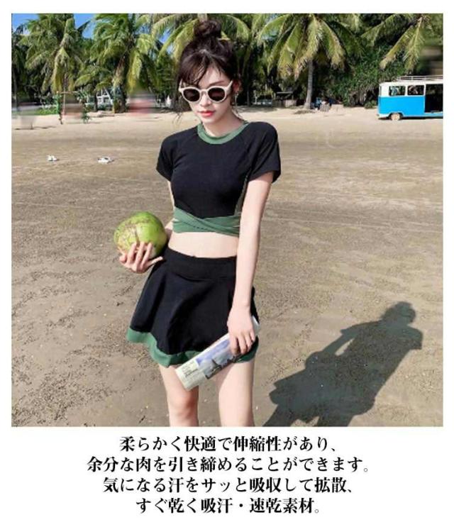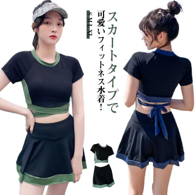 セパレート オトナ女子 露出控えめ 水着 フィットネス 学生 かわいい フィットネス水着 運動用 半袖 スポーツウェア 競泳水着 20代 ジム レディース フレアスカート 体型カバー水着 フィットネス水着 30代 二の腕 お腹 お尻 太もも