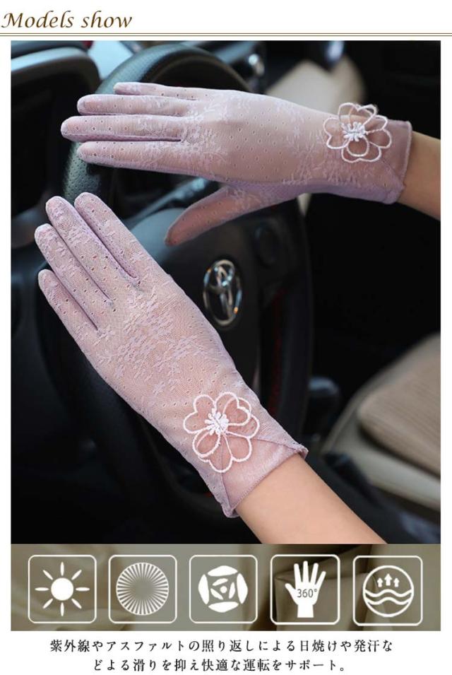 | エレガントなデザインのUV手袋です。 紫外線やアスファルトの照り返しによる日焼けや発汗などよる滑りを抑え快適な運転をサポート。 女性らしいデザイン性と通気性に優れたレース仕様。 手のひらの滑り止め加工や指先にはタッチパネル対応パッチなど実用性に優れたアイテム。 通気性に優れたメッシュ素材で夏でも涼しく蒸れずに快適に着用可能。 レジャーやドライブ、ガーデニング、通勤など、これからの季節に大活躍間違いなし。 大切な方へのちょっとしたギフトにもおすすめです。 | |