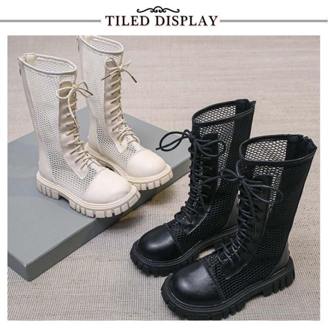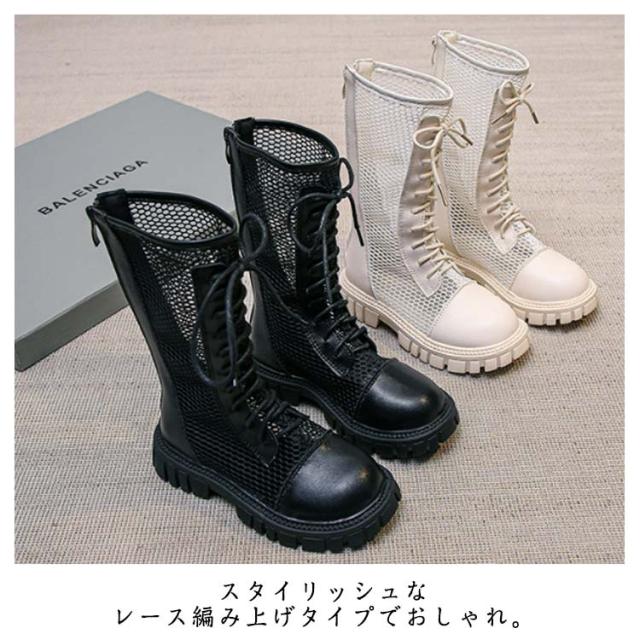 サマーブーツ キッズ シューズ 編み上げ ブーツ レースアップ メッシュブーツ 子供用 女の子 ジップ 軽量 通気性 ガールズ 女児 ジュニア こども服 韓国ファッション 16.5-22cm