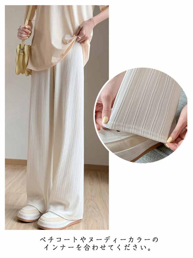 | “着ていることさえ忘れる” 夏の涼感リブワイドパンツ 涼しさを追求した涼感素材 通気性も拔群、蒸れを防ぎ、暑い夏でも快適に! ランダムな凹凸のリブ こなれた雰囲気を演出しラフに仕上げてくれます。 アイポリーは透け感がございます。 ペチコートやヌーディーカラーのインナーを合わせてください。 透け感が苦手な方は、濃い色をお選びください。 | |