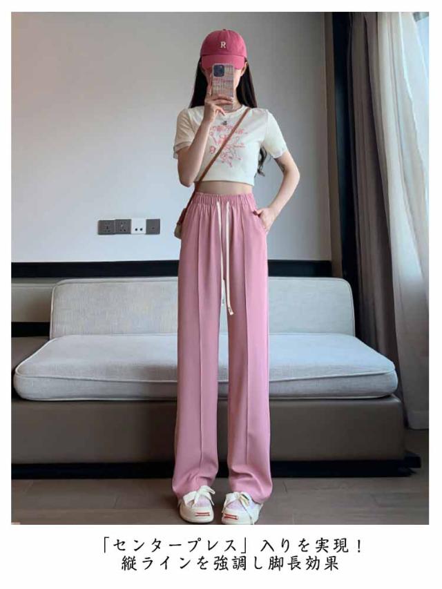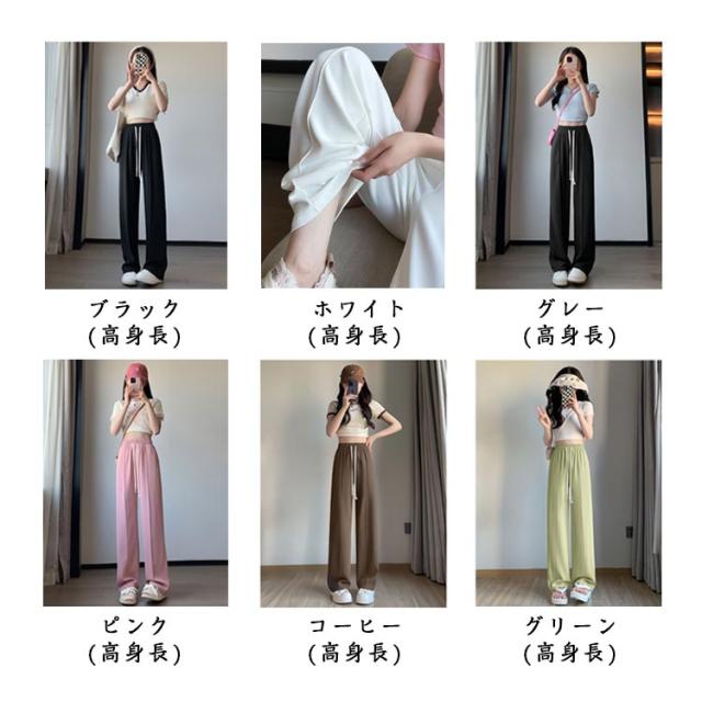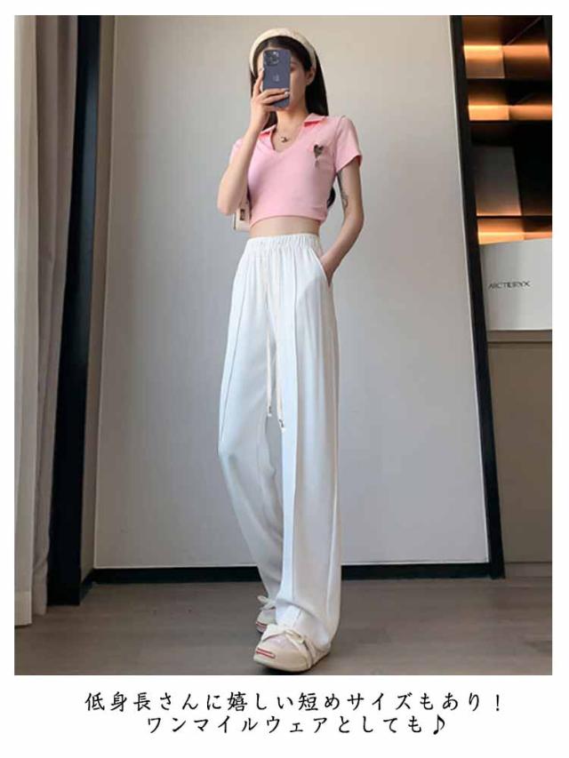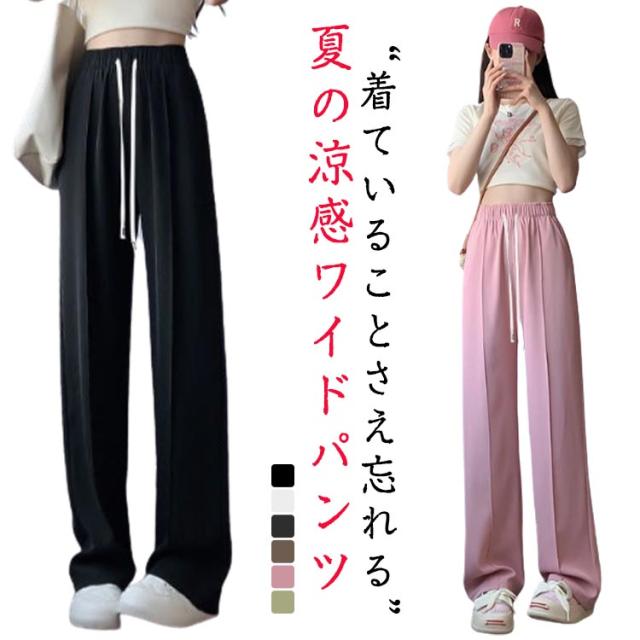 ワイドパンツ シンプル ロングパンツ レディース ボトムス ワイドパンツ 冷感 低身長 アイスシルクパンツ ひんやり 夏 通気性 楽ちん ゆったり 大きいサイズ 高身長 パンツ ウエストゴム 無地 イージーパンツ きれいめ カジュアル 涼しい 落ち感