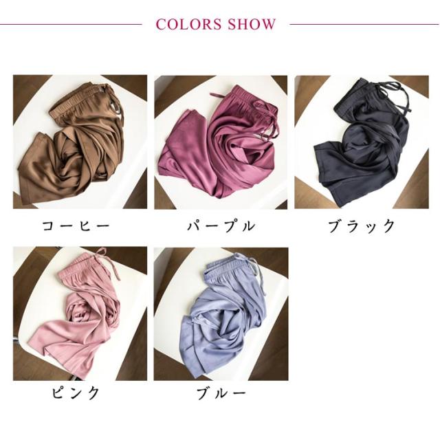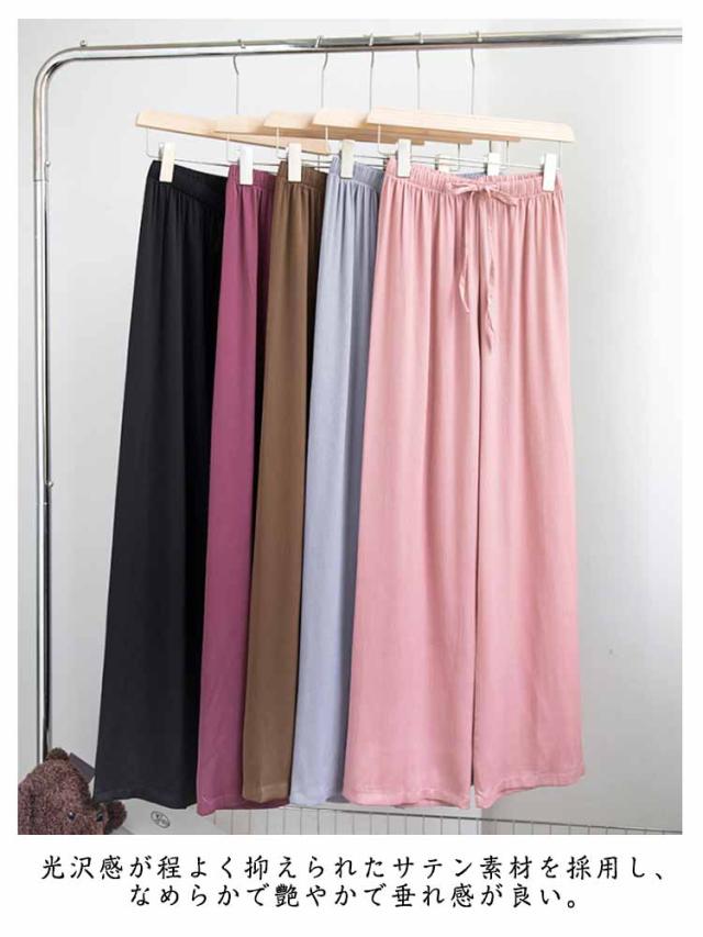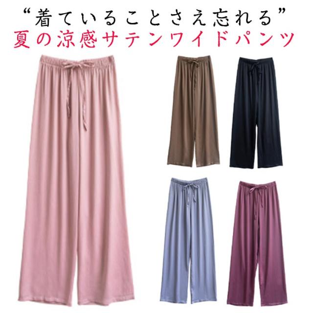 ロングパンツ 冷感 サテンパンツ レディース パンツ ワイドパンツ サテンパンツ ボトムス イージーパンツ アイスシルクパンツ ひんやり 楽ちん 夏 大きいサイズ ウエストゴム 無地 シンプル きれいめ カジュアル 涼しい 落ち感 着痩せ 大人