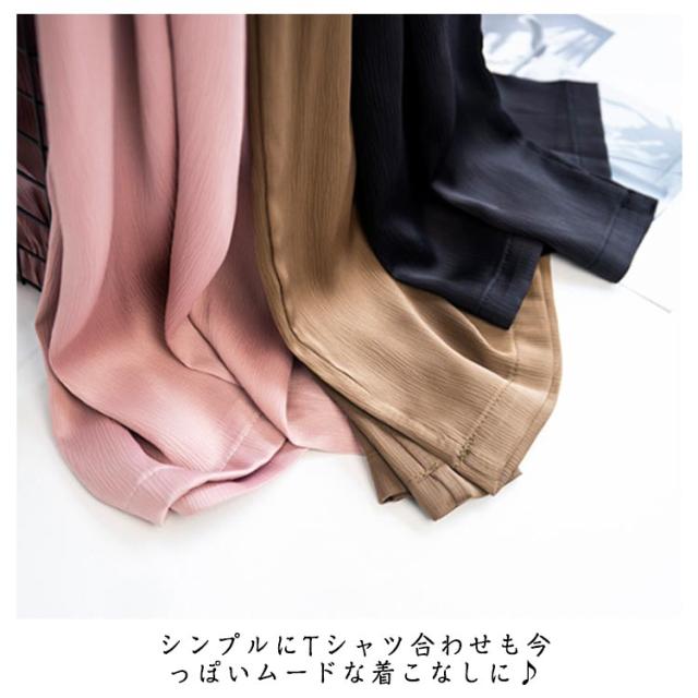 | “着ていることさえ忘れる” 夏の涼感サテンワイドパンツ 光沢感が程よく抑えられたサテン素材を採用し、なめらかで艷やかで垂れ感が良い。 涼しいアイスシルク、軽くてフィット感と柔らかく通気性があり、夏の蒸し暑さを解消し。 ゆったりめのワイドシルエットだけど落ち感のある生地でワイド過ぎない演出。 シンプルにTシャツ合わせも今っぽいムードな着こなしに♪ | |