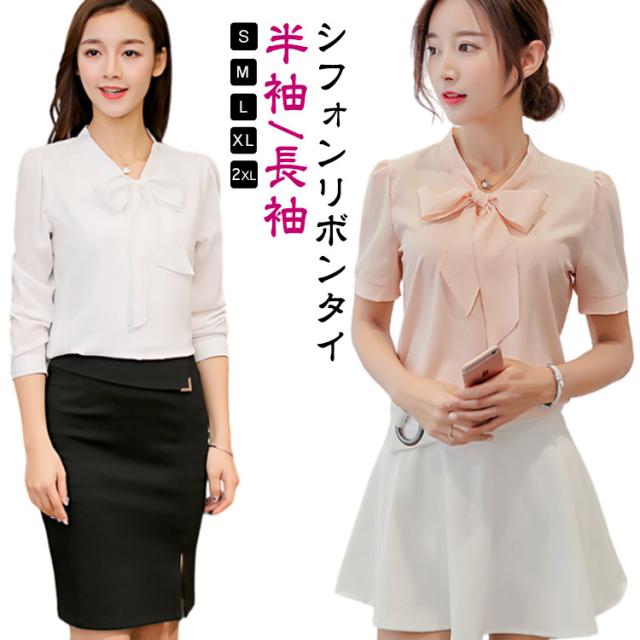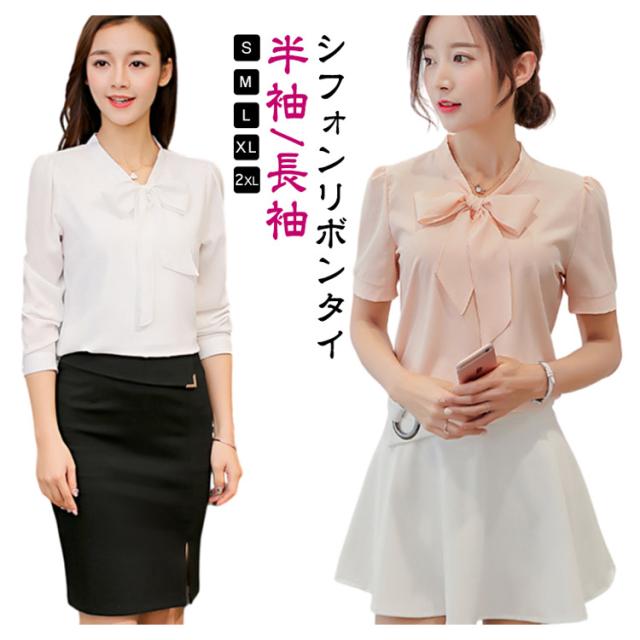 トップス シフォン シフォン 無地 レディース シャツ 白 長袖 半袖 ブラウス オフィス リボン シフォン ブラウス 長袖ブラウス ブラウス リボンタイ シャツブラウス レディース 長袖 半袖 可愛い フォーマル カジュアル