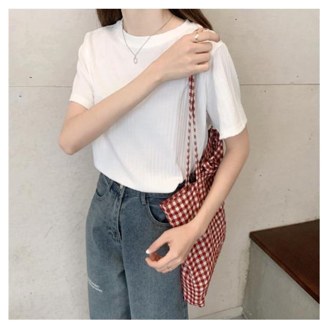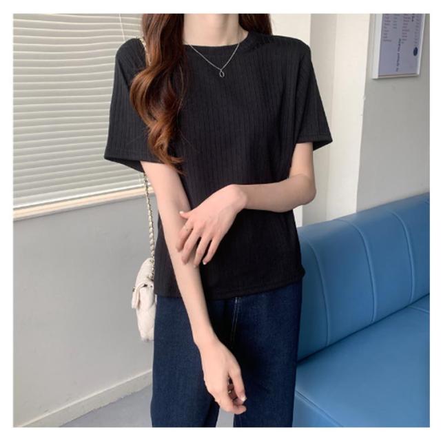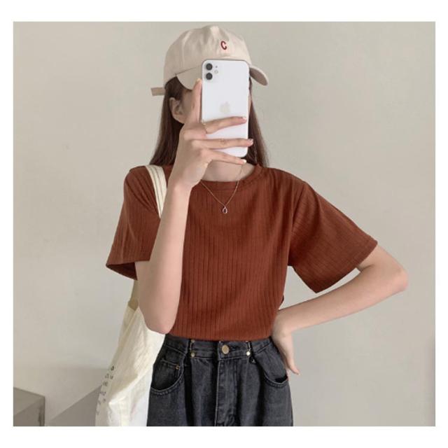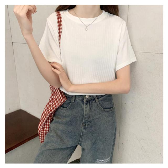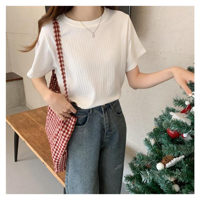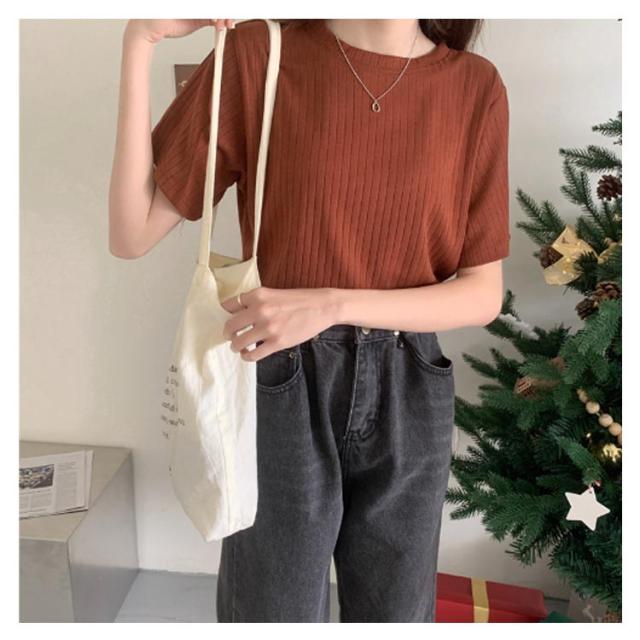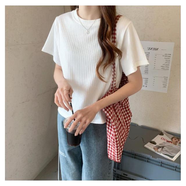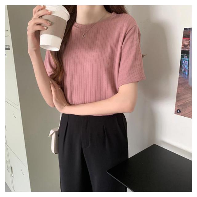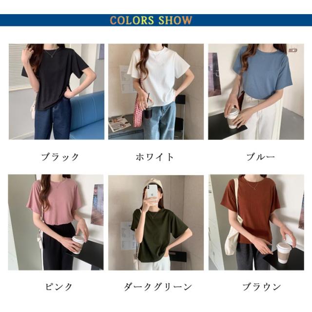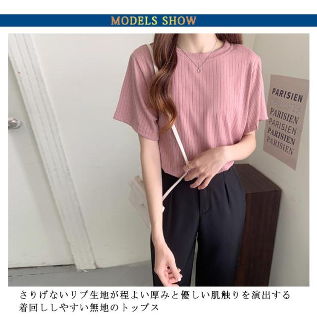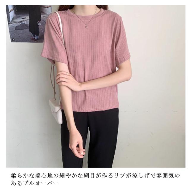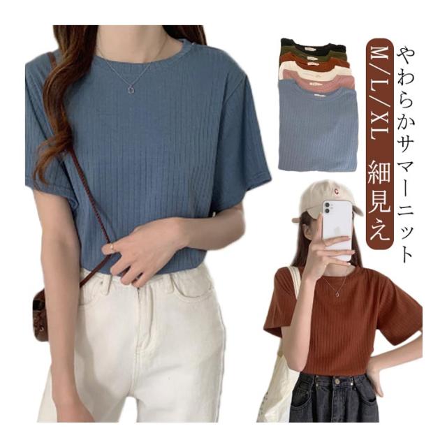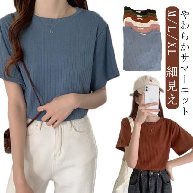 半袖 リブ uネック レディース サマーニット Tシャツ シンプル Tシャツ 5分袖 春 夏 ニット 丸首 重ね着 セーター 大きいサイズ カットソー トップス ニットソー クルーネック ストレッチ 薄手 細見え オフィス カジュアル 大人 きれいめ 春夏