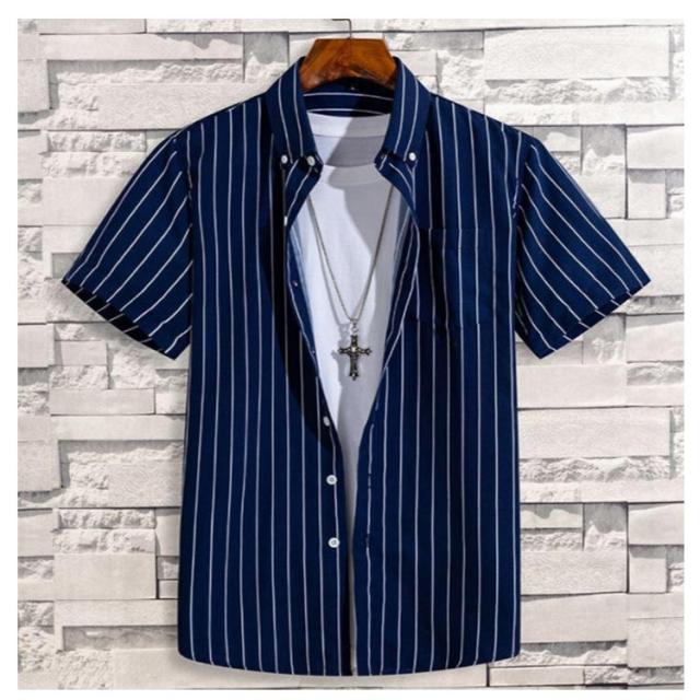 | M~5XL!ストライプ柄半袖シャツ シワになりにくく、取り扱いやすい。 肌触りが良く、程よく薄手の生地感。 合わせるボトムスはなチノパンツやデニムパンツからトレンドのナイロンパンツやクライミングパンツとのコーディネートも◎ | |