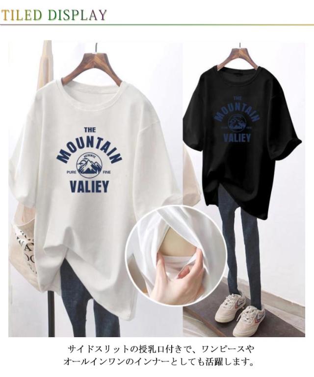 半袖 カジュアル 授乳服 チュニック ロゴTシャツ おしゃれ インナー 授乳しやすい ゆったり 授乳服 Tシャツ 前開き 産後 授乳しやすい ロング丈 産前 大きいサイズ 出産準備 マタニティ カットソー 妊婦服