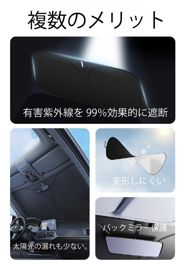 超軽量フロントサンシェード断熱 日よけ 車用遮光マジカルシェード 吸盤なし折りたたみ カーサンシェード 軽量 コンパクト 収納袋付き