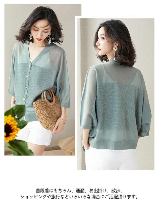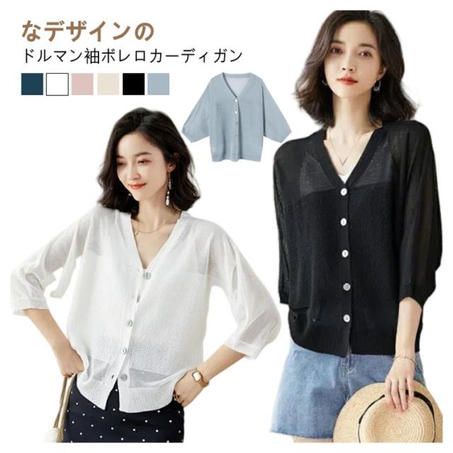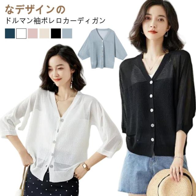 カーディガン ボレロ サマーカーディガン シアーカーディガン レディース ドロップショルダー ドルマンスリーブ 7分袖 通勤 UV対策 羽織り 冷房対策 薄手 お洒落 キレイめ ライトアウター