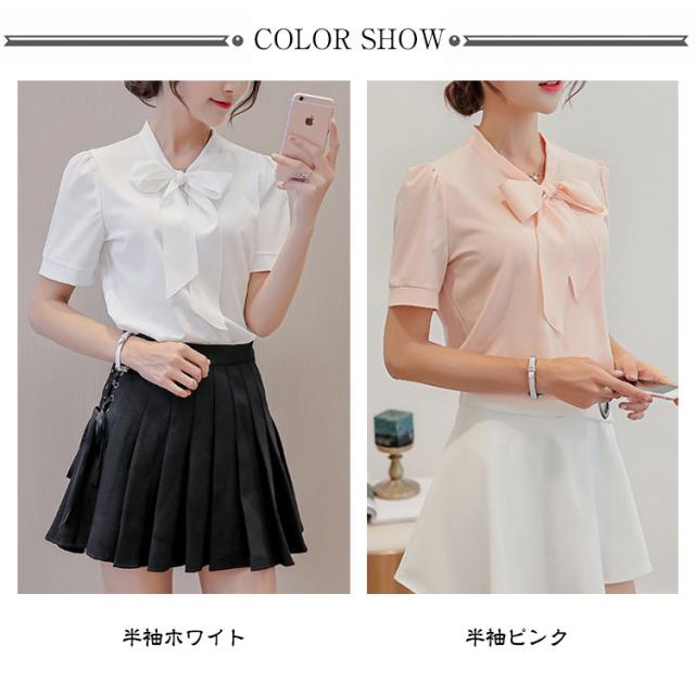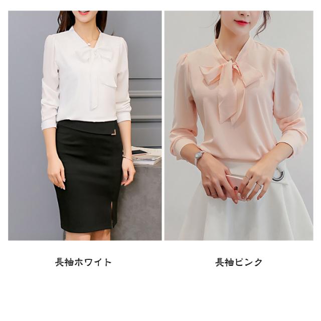 シフォン トップス 白 レディース 長袖ブラウス レディース ブラウス シフォン 長袖 リボンタイ オフィス リボン レディース カジュアル 半袖 シャツ ブラウス シャツブラウス 無地 長袖 半袖 可愛い フォーマル ブラウス