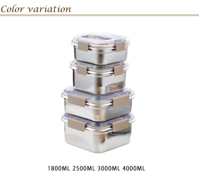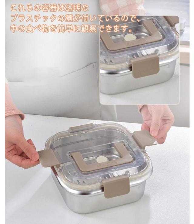 | 食材を新鮮に保存できるステンレス製保存容器! 耐食性、防錆性、環境保護特性を備えた耐久性のある食品グレードのステンレス鋼で作られています。 安全に使用できるだけでなく、食品を長期間新鮮で健康に保つことができます。 シリコンシールリング付きのスプリングロックカバーを使用しています。 これらの容器は透明なプラスチックの蓋が付いているので、中の食べ物を簡単に観察できます。 | |
