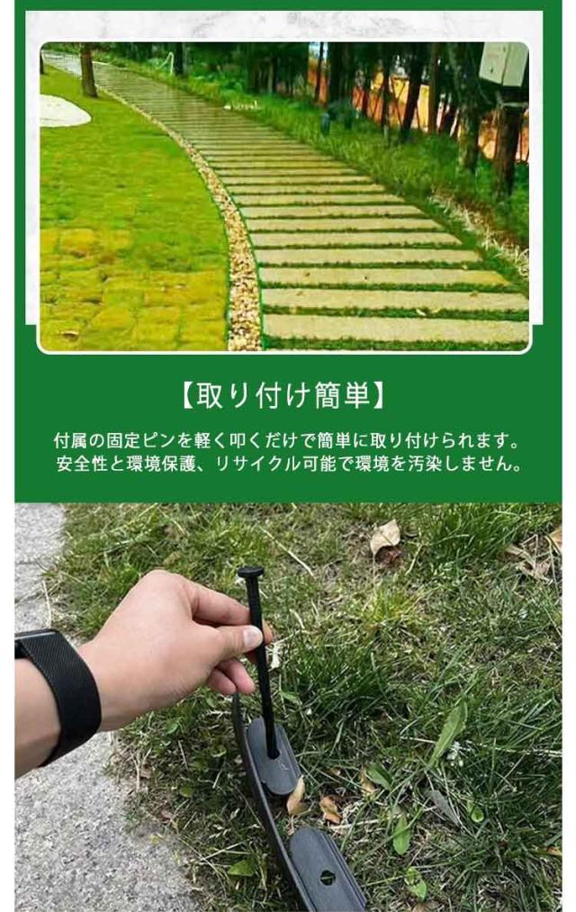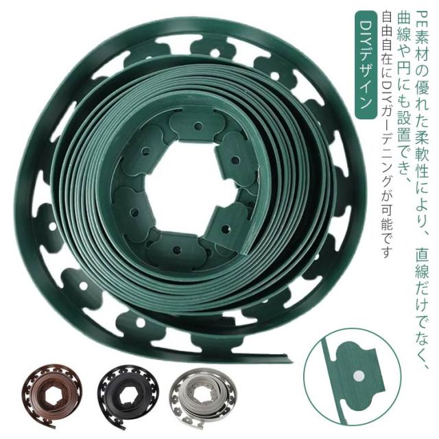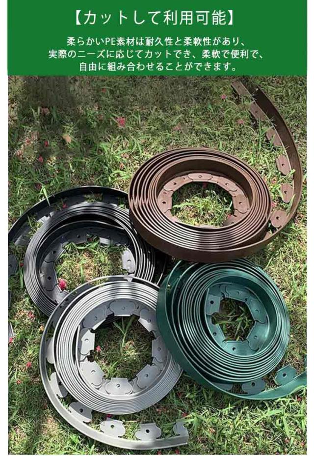 | 【DIYデザイン】 PE素材の優れた柔軟性により、直線だけでなく、曲線や円にも設置でき、自由自在にDIYガーデニングが可能です。 【カットして利用可能】 柔らかいPE素材は耐久性と柔軟性があり、実際のニーズに応じてカットでき、柔軟で便利で、自由に組み合わせることができます。 【取り付け簡単】 付属の固定ピンを軽く叩くだけで簡単に取り付けられます。 安全性と環境保護、リサイクル可能で環境を汚染しません。 【応用分野】 歩道タイル、道路脇の庭園スペース、花壇の建設、庭園の建設、砂利と土の分離、花壇のエッジ装飾、人工芝とフェンスの分離などに適しています。 | |