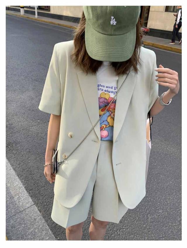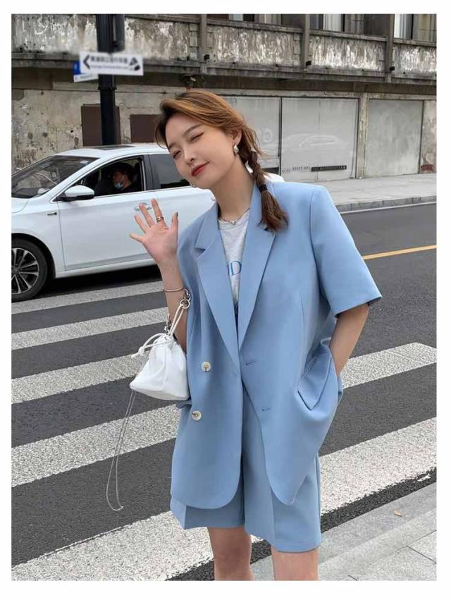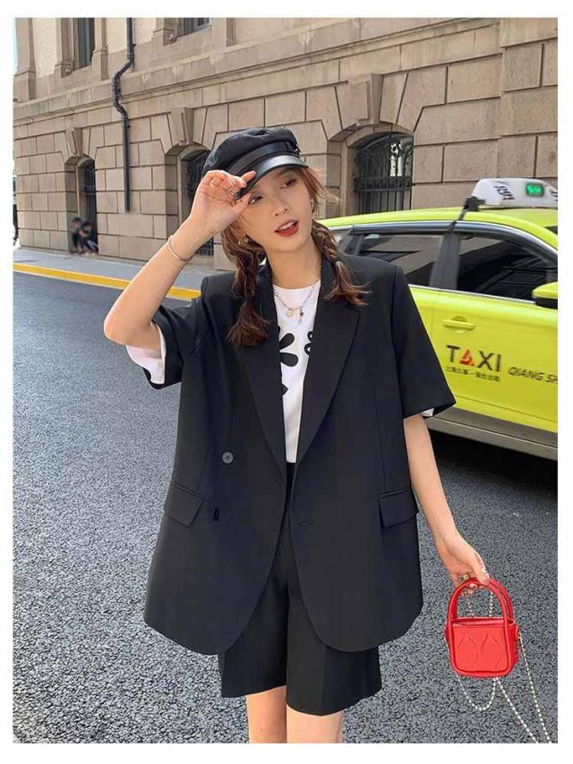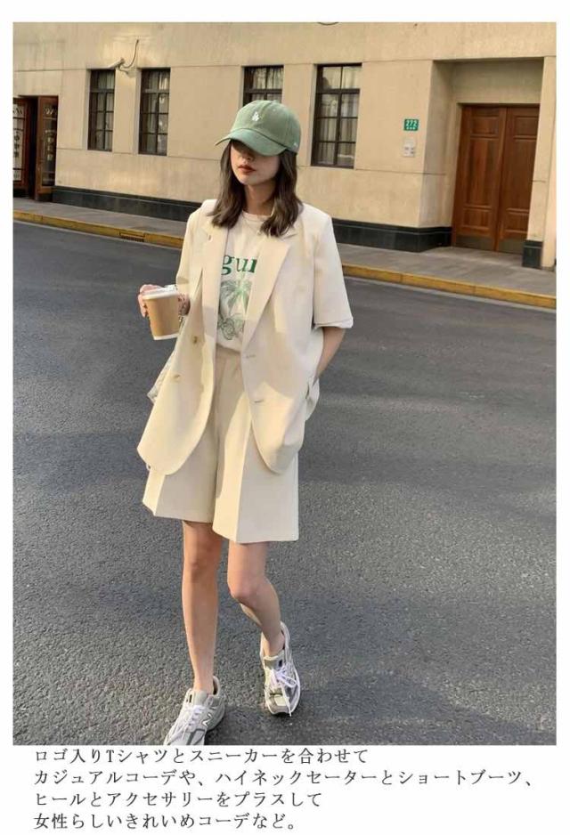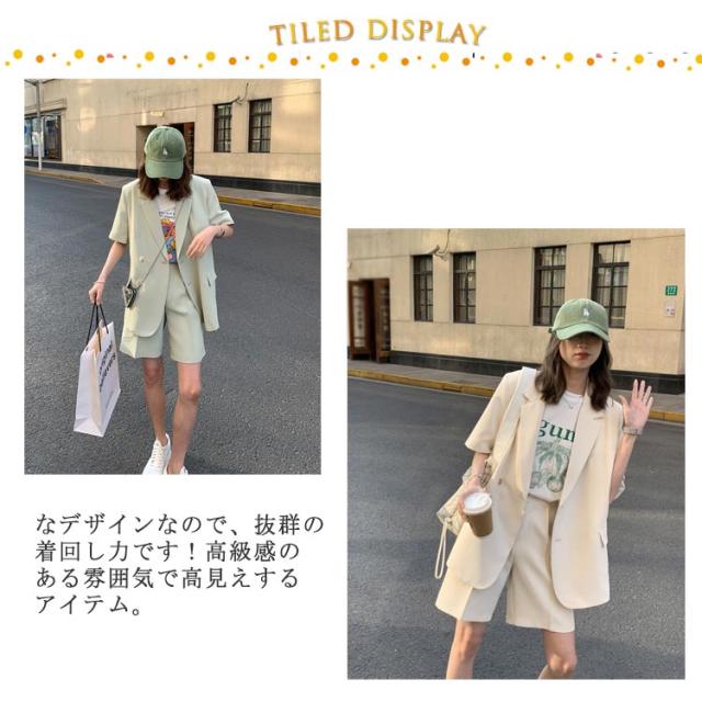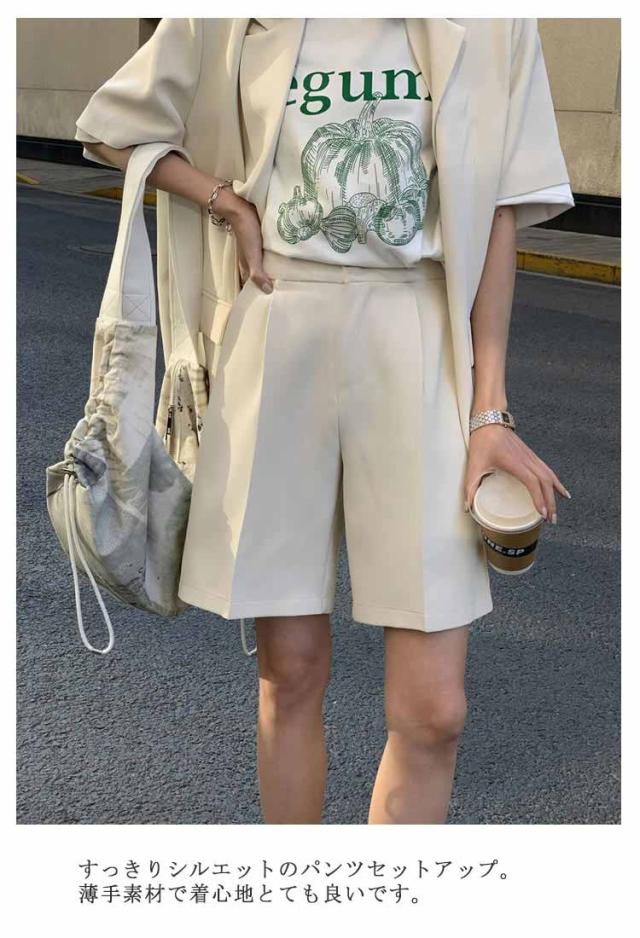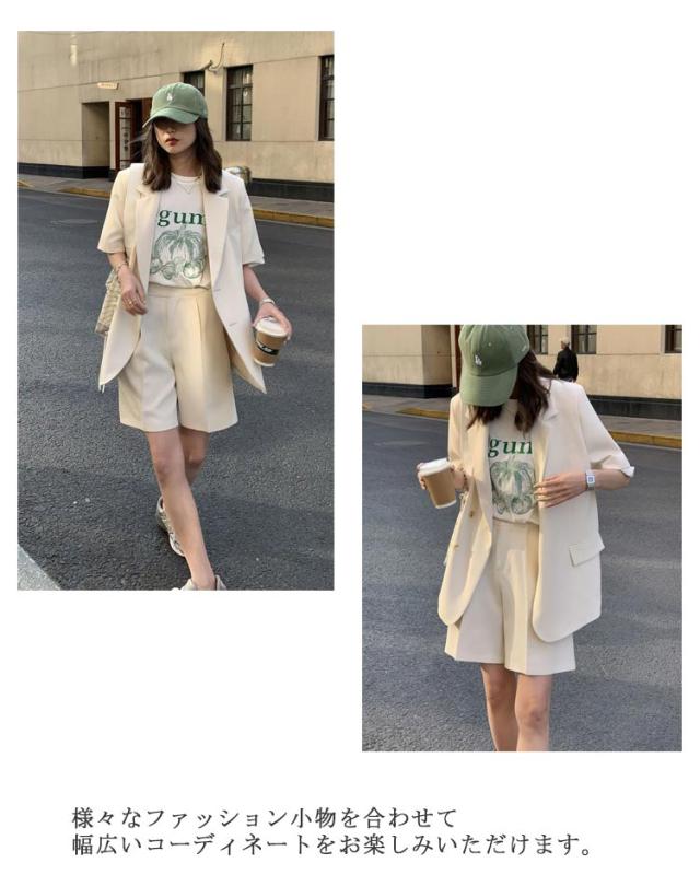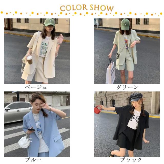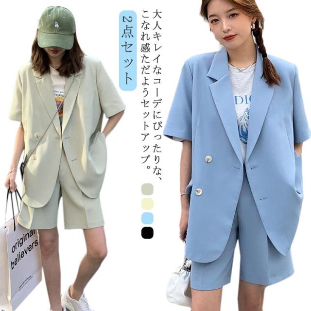 短パン レディース 夏 パンツスーツ 通勤 ショートパンツ 2点セット スーツ セットアップ 春 上着 上下セット 半袖 お出かけ 半袖アウター オーバーサイズ ショートパンツ 大人 可愛い ジャケット 母 きれいめ オフィス 通学 OL ショート丈