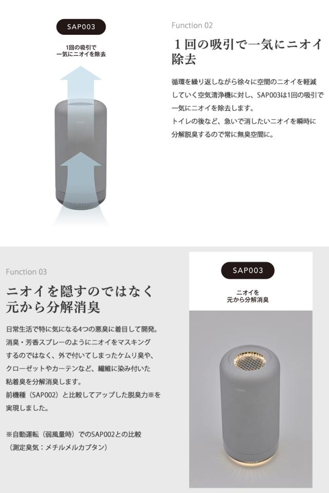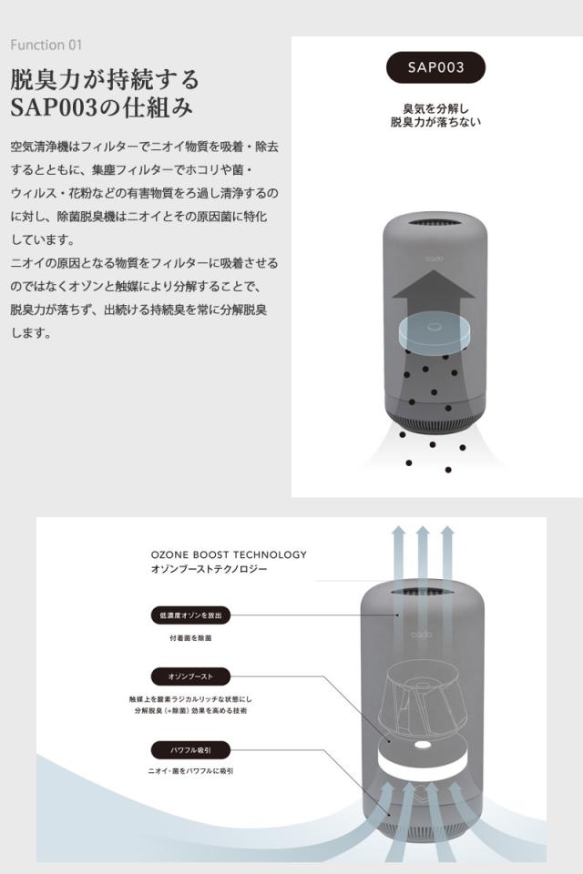 cado カドー 除菌脱臭機 SAP-003 (送料無料) 脱臭機 オゾン 消臭 ペット ニオイ 玄関 トイレ 生活臭 花粉対策 介護 カビ臭 生ごみ 下駄箱 タバコ キッチン リビング