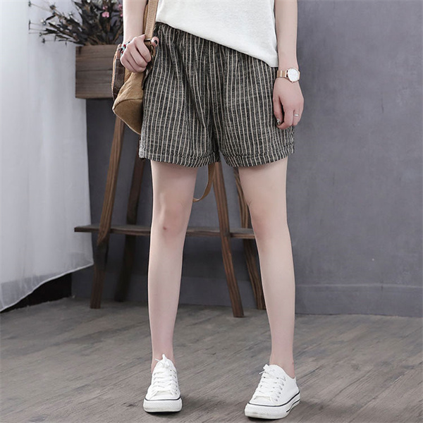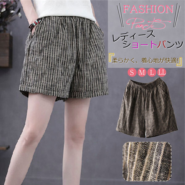 送料無料 ショートパンツ レディース チェック柄 棉麻 パンツ ハイウェスト ショーパン コットンパンツ 短パン パンツ ショート丈 綿 シンプル