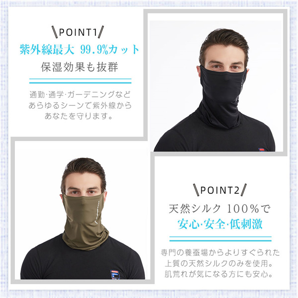 ネックカバー メンズ フェイスマスク 夏用 UVケア フェイスカバー おしゃれ 紫外線対策 タートル ハイネック 日焼け防止 冷房対策 首だけ 首 絹