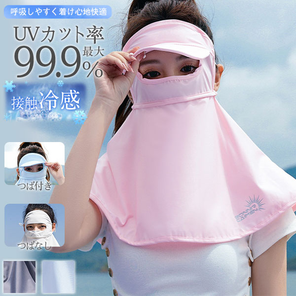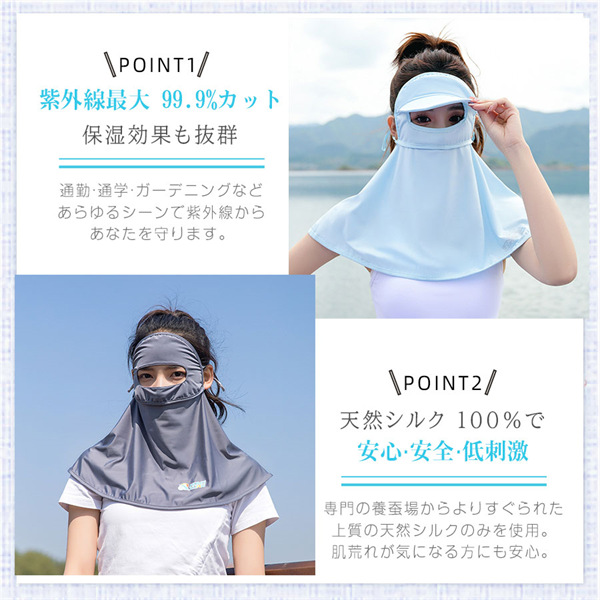 フェイスカバー ネックカバー つば付きフェイスマスク レディース uv 紫外線対策 uvカット 日焼け防止 紫外線カット 冷感 シルク 通気性 日よけ