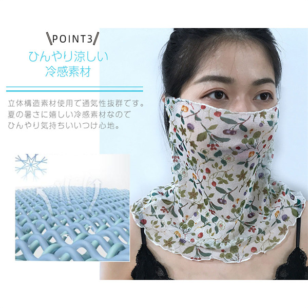ポイント超超祭 フェイスカバー ネックカバー フェイスマスク レディース 花柄 uv 紫外線対策 uvカット 日焼け防止 紫外線カット 冷感 シルク 通気性 日よけ