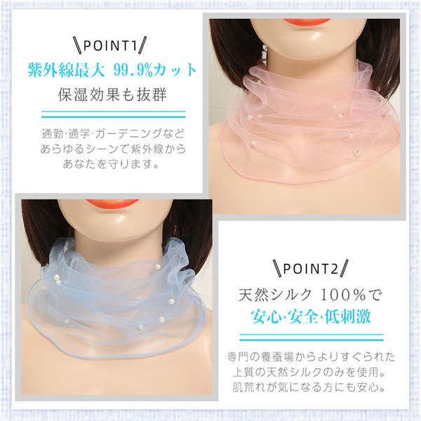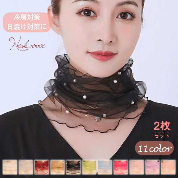 2枚セット ネックカバー 夏 UVケア おしゃれ シアー パール 付け襟 タートル ハイネック 日焼け防止 冷房 紫外線ケア 首 絹 重ね着 薄手
