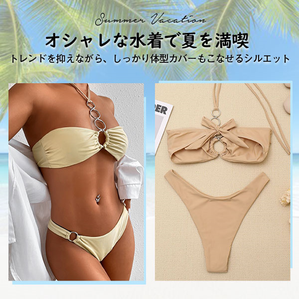 ビキニ 水着 レディース 体型カバー ホルター セパレート 無地 2点セット セクシー スイムウェア 可愛い スリムウェア スカート 女性用 おしゃれ