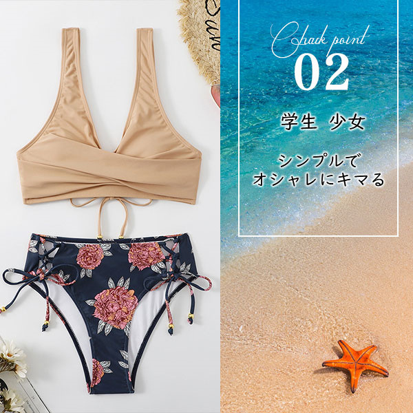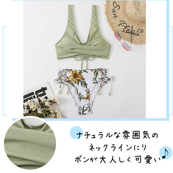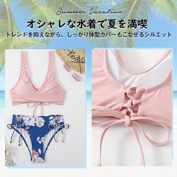 ポイント超超祭 水着 レディース 2点セット ビキニ水着 花柄 ホルター 体型カバー セパレート 短パン水着 スイムウェア ネックトップス 小胸バンドゥ 夏 海