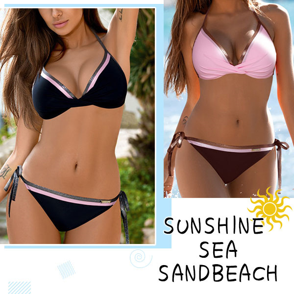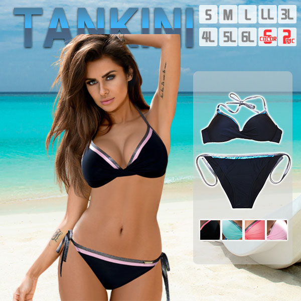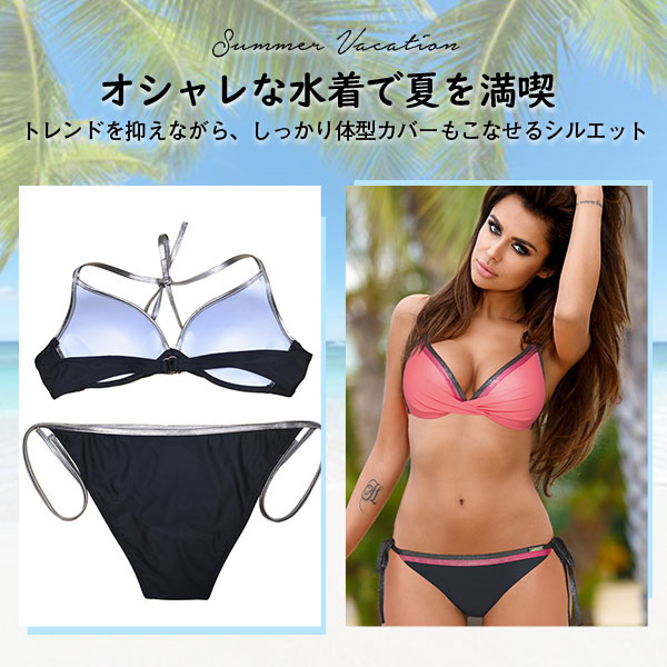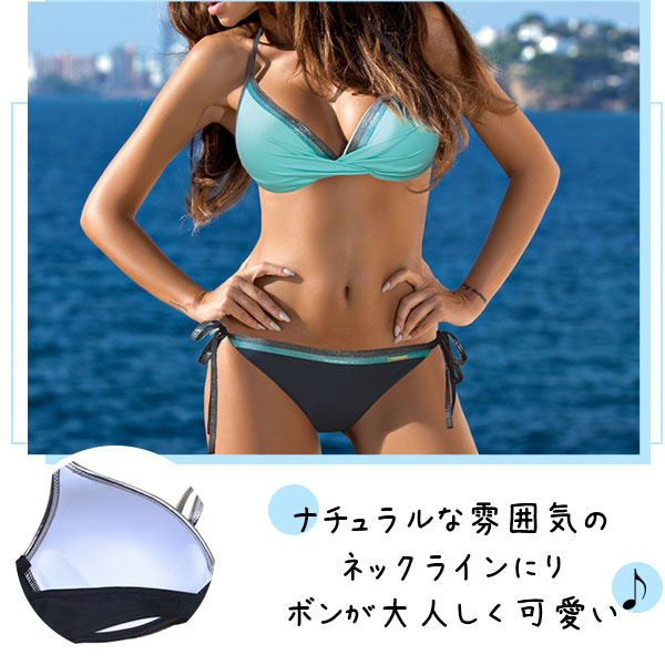 ビキニ 水着 レディース 配色 2点セット ホルター セパレート ショーツ プール 体型カバー 上下セット セクシー 20代 30代 女性用 海