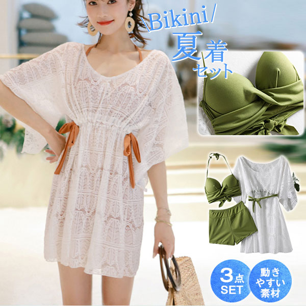 ポイント超超祭 水着 ビキニ レディース セパレート 3点セット レース セクシー 体型カバー スイムウェア 夏 海 ビーチ お洒落 オトナ女子 女性用 20代