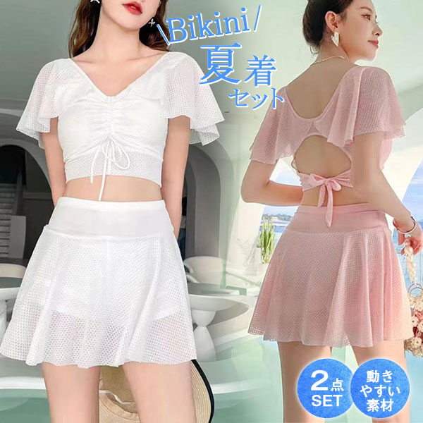 ポイント超超祭 ビキニ 水着 レディース 半袖 2点セット 体型カバー セパレート セクシー スイムウェア 可愛い スリムウェア スカート温泉 女性用 おしゃれ