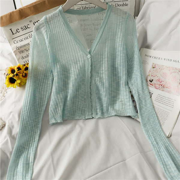 ◎肌に触れるとひんやりと冷たい接触冷感糸を使用したカーディガン。