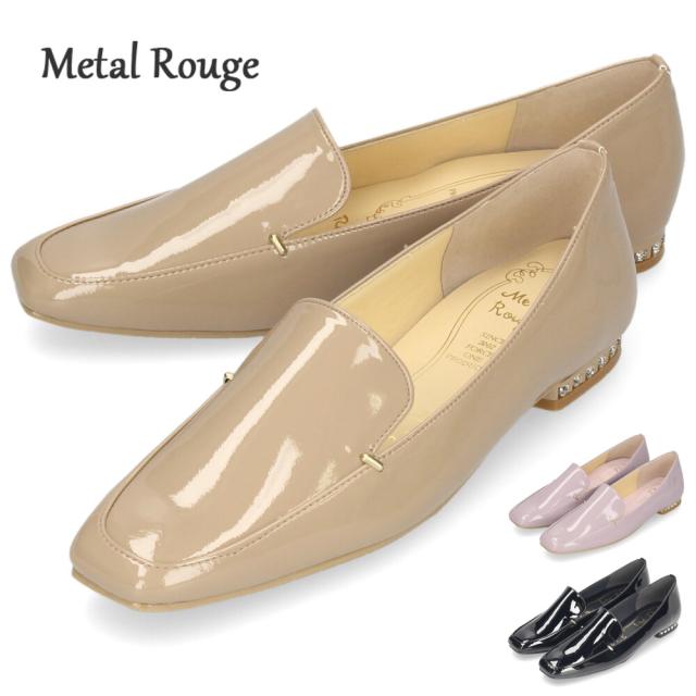 パンプス レディース モカパンプス スクエアトゥ メタルルージュ ブラック 黒 ベージュ パープル ローヒール エナメル フラット 日本製 2029 Metal Rouge