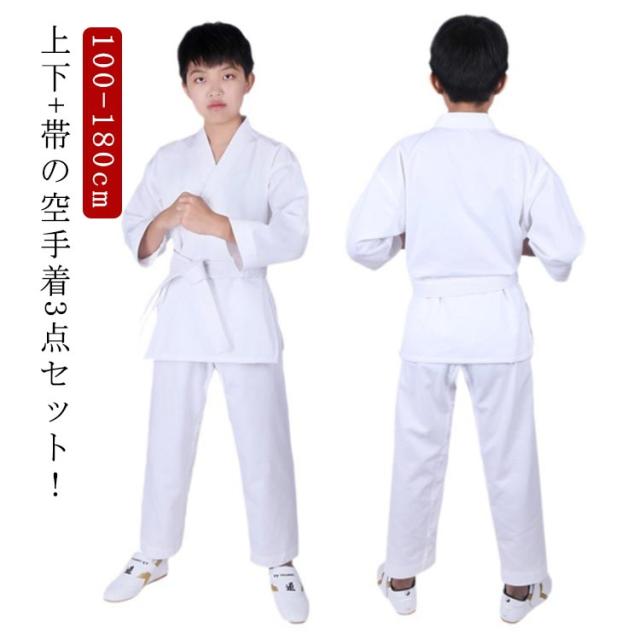 空手着 子供用 帯 セット 3点セット ジュニア 空手衣 白帯 上下 空手 空手道着 トップス ズボン 初心者 入門者向け 男女兼用 空手スーツ 子ども 授業用 道着 練習用 合気道 柔道授業 柔道着 道衣 中学生 高校生 100-180cm