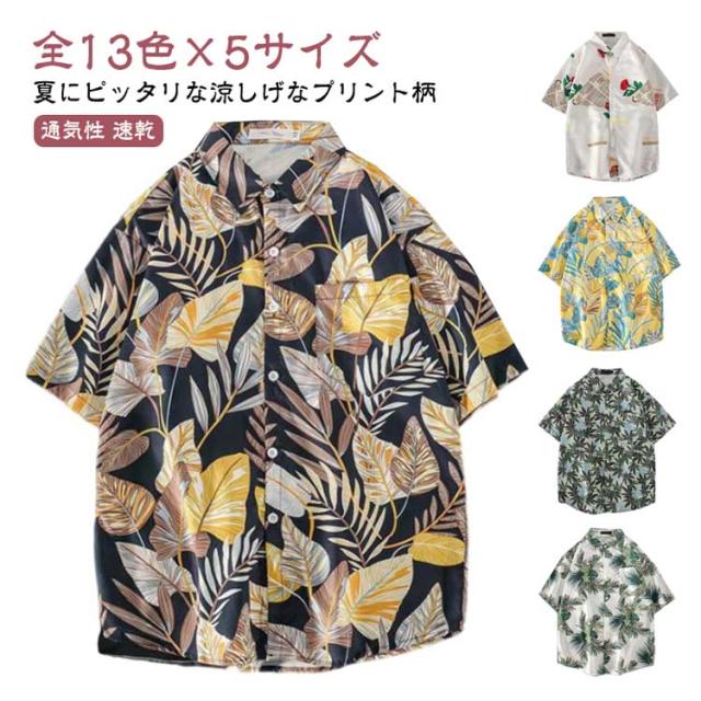 アロハシャツ レディース 半袖 メンズ カジュアル アロハ風 プリント 夏 ゆったり おしゃれ ビーチシャツ ビーチウエア かりゆしウェア ボタニカル柄 花柄シャツ 通気性 速乾 軽量 ハワイアン サーフ系 リゾート オシャレ プレゼント ギフト イベント 祭り 送料無料
