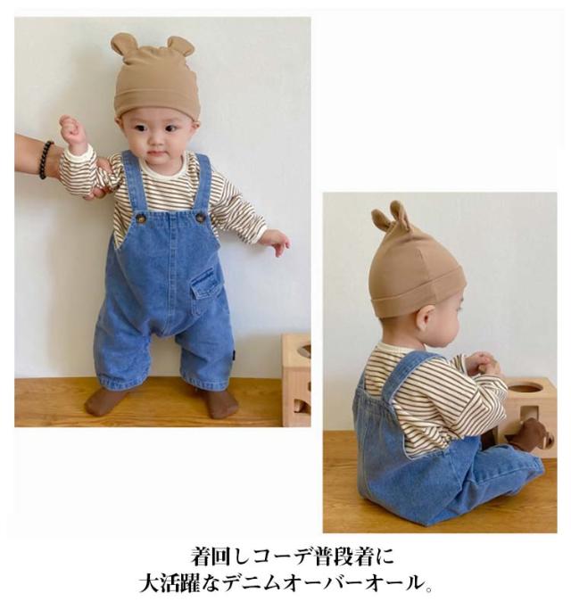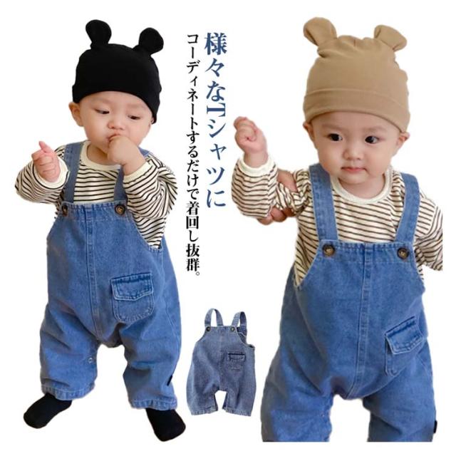キッズ デニム サロペット ベビー服 赤ちゃん ゆったり ワイド オーバーオール オールインワン ロングパンツ ジーンズ 韓国 子供服 女の子 男の子 66 73 80 90 100 送料無料