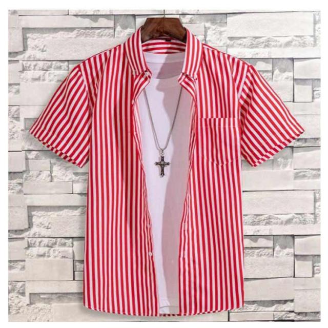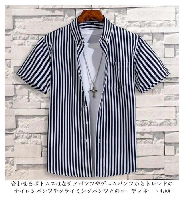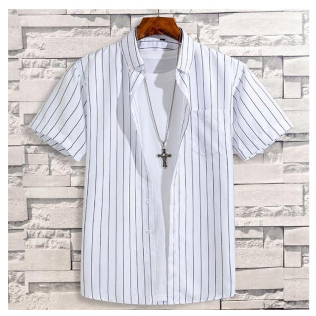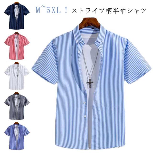 | M~5XL!ストライプ柄半袖シャツ シワになりにくく、取り扱いやすい。 肌触りが良く、程よく薄手の生地感。 合わせるボトムスはなチノパンツやデニムパンツからトレンドのナイロンパンツやクライミングパンツとのコーディネートも◎ | |