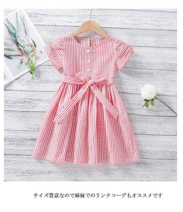 | サイズについての説明 | 110ワンピース丈56バスト66おすすめ身長100-110cm 120ワンピース丈60バスト69おすすめ身長110-120cm 130ワンピース丈64バスト72おすすめ身長120-130cm 140ワンピース丈68バスト75おすすめ身長130-140cm 150ワンピース丈72バスト78おすすめ身長140-150cm 160ワンピース丈76バスト81おすすめ身長150-160cm ※サイズは平置き実寸になります。 サイズ表の実寸法は商品によって1-3cm程度の誤差がある場合がございます |