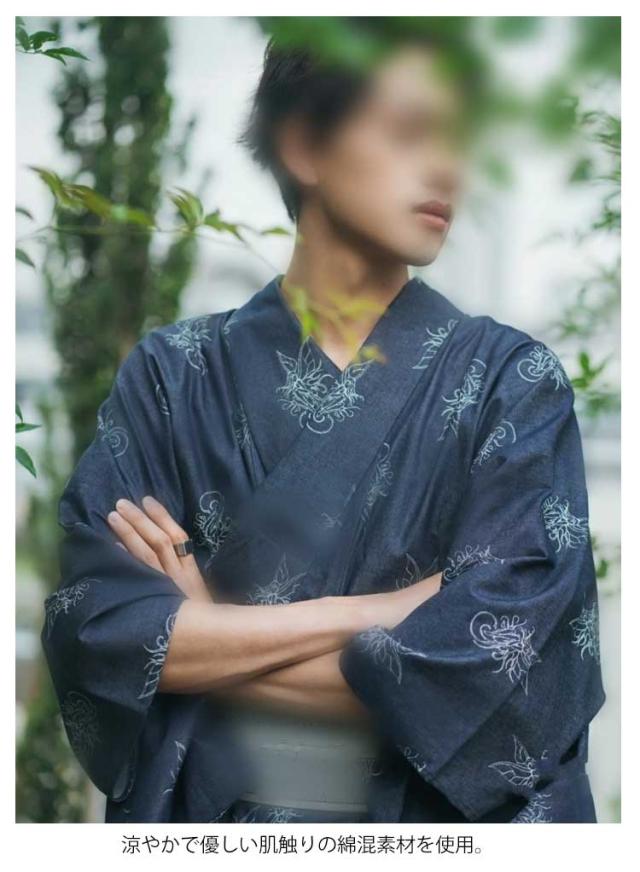 | ゆかたと帯の2点セット。 夏祭りや花火大会、プレゼントに!腰紐が付いたメンズ浴衣です。 涼やかで優しい肌触りの綿混素材を使用。 花火大会や盆踊り、納涼会におすすめです! | |