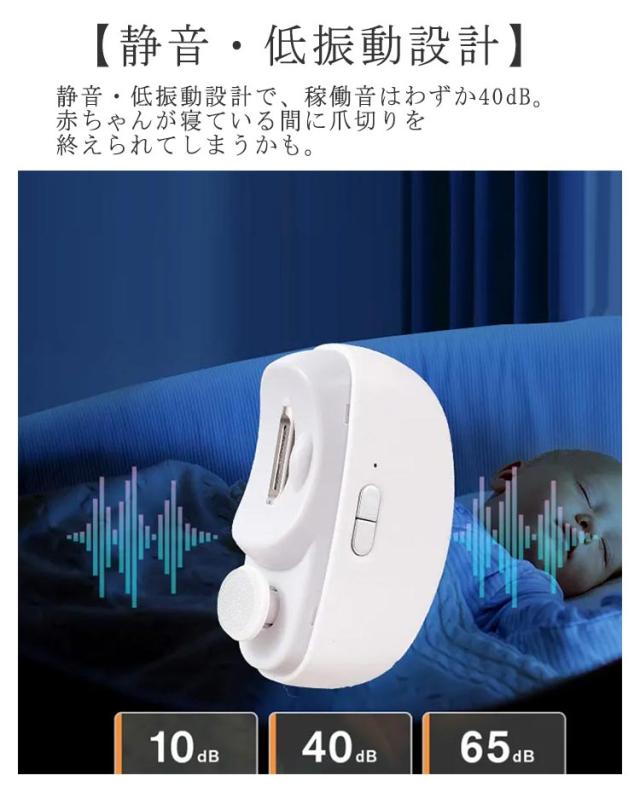 | 【爪へのダメージが少ない】深爪や爪の変形のリスクを避けるためには爪への負荷を抑えることが重要です。 【2段階調整機能でスピード選べる】気分や状況に合わせてスピードを調整できます。小さいお子さんは、1速でゆっくり丁寧にお使いくださいませ。 【皮膚には触れない構造】電動爪削りと聞くと少し怖い印象を持つかもしれませんが、皮膚は刃に入らない構造になっております。 【LEDライト付き】影になってしまいがちな手元の部分をしっかり照らしてくれるため、より安全に爪を整えることができます。子ども・高齢者・介護者・視覚にハンディがある人など誰でも使いやすく配慮しています。 【静音・低振動設計】静音・低振動設計で、稼働音はわずか40dB。赤ちゃんが寝ている間に爪切りを終えられてしまうかも。 【USB充電式】付属のUSBケーブルでさっと充電が可能!充電式なので、電池式と違い電池を買う手間も入れ替える手間も必要ありません。 | |